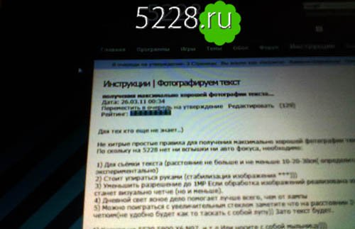 Для тех кто еще не знает, есть нехитрые простые правила для получения максимально хорошей фотографии текста. Поскольку на Nokia 5228 нет ни вспышки, ни автофокуса, необходимо: